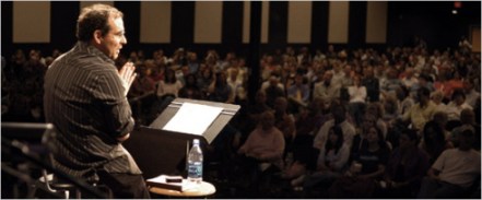 What Woodland Hills Church (as well as and the Meeting House in Toronto and other mega-Anabaptist Churches that may be out there) demonstrates is that we don’t have to chose between embracing the church as community, on the one hand, and holding a large weekend gathering, on the other. There’s nothing intrinsically anti-kingdom about large gatherings. After all, large crowds flocked to Jesus, and the early Christians in Jerusalem met in large groups in “Solomon’s porch” (Acts 5:16-19). The key, however, is to always remind people that the primary expression of church is not the large group, but the smaller communities that come together in houses to share life, study the word, worship and minister together.